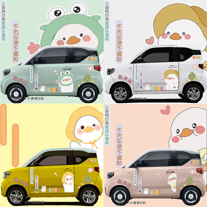 小刘鸭车贴QQ冰淇淋宏光mini奇瑞小蚂蚁欧拉黑猫科莱威卡通拉花热门设计联盟服务商