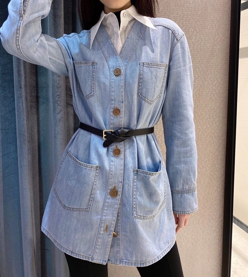 新款other其他现货2021春季百搭宽松中长款夹克V领牛仔外套女上衣热门设计联盟服务商
