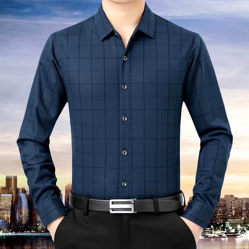 潮流男装格子长袖山羊绒衬衫男 21秋季中年男士商务休闲免烫衬衣热门设计联盟服务商