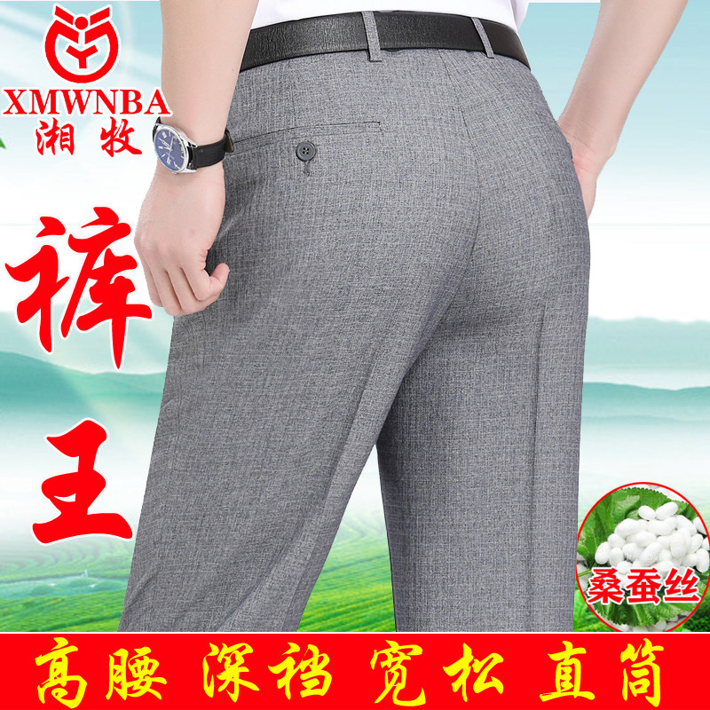湘牧桑蚕丝商务休闲直筒西裤夏季薄款男士免烫西服裤长裤男裤韩版热门设计联盟服务商