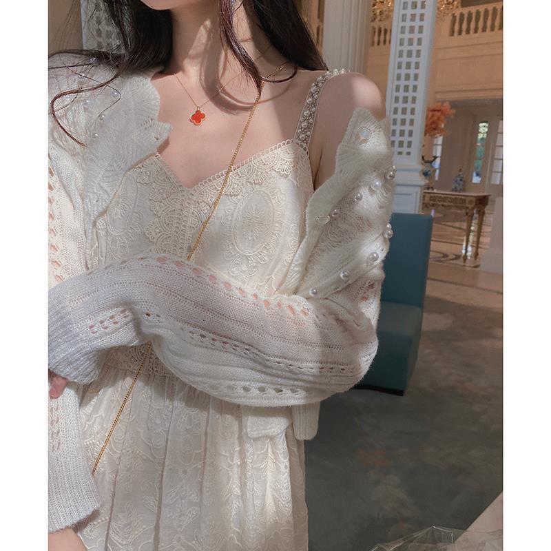 白色重工蕾丝吊带连衣裙女长款2021春夏刺绣法式设计感小众裙子夏热门设计联盟服务商