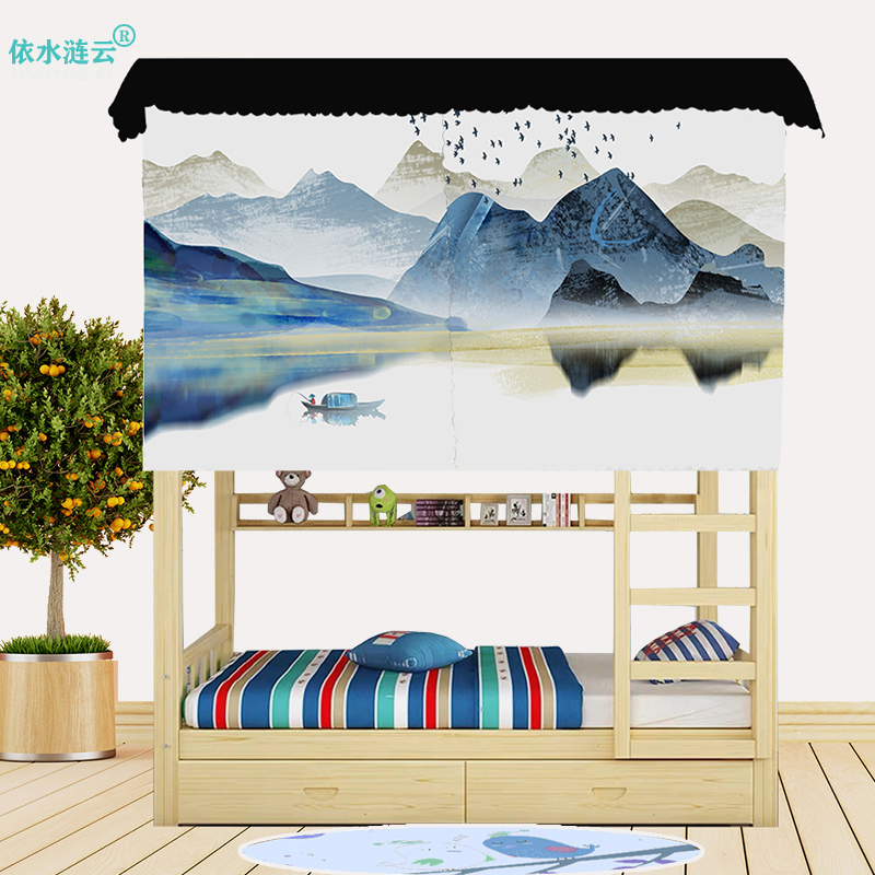 Q开学宿舍上下铺隔断布帘强遮光个性国潮山水画寝室文化节装饰床热门设计联盟服务商