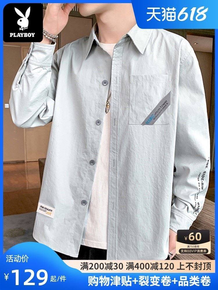 花花公子衬衫男士夏季薄款潮流休闲长袖衬衣工装外套痞帅气上衣服热门设计联盟服务商