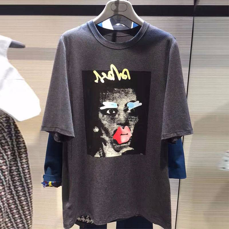 欧阿玛施旗2021夏装新款正品涂鸦宽松大码印花卡通短袖t恤女上衣热门设计联盟服务商