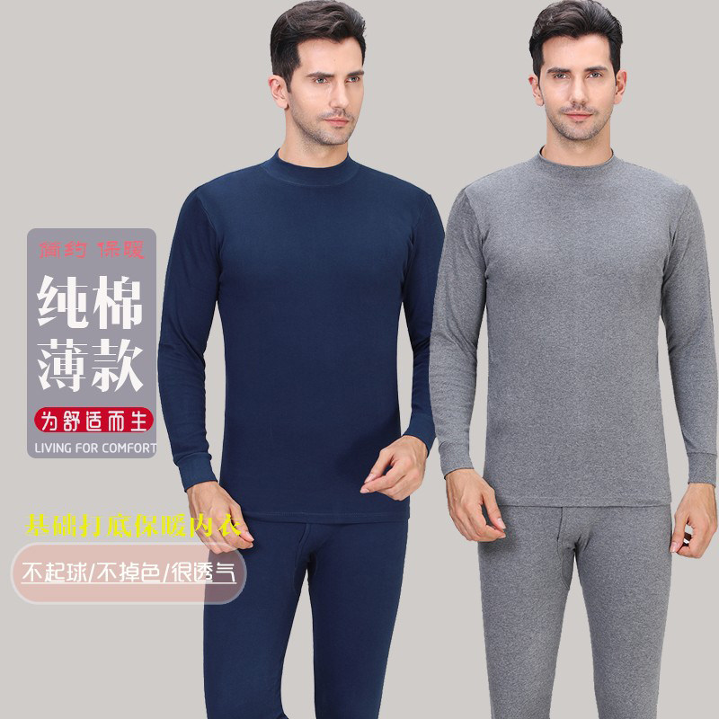 时尚高品质男士保暖内衣精梳棉贴身秋衣秋裤不加绒半高领打底毛衫热门设计联盟服务商