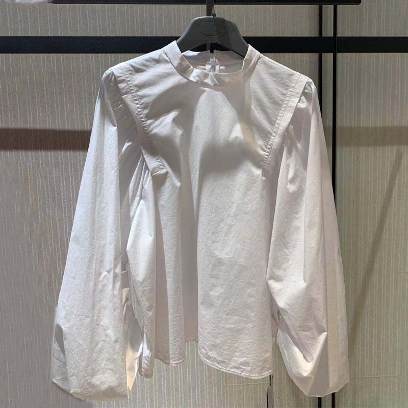 年阿玛施新特2021新款春秋立领棉麻条纹法式灯笼袖衬衫女夏设计感热门设计联盟服务商