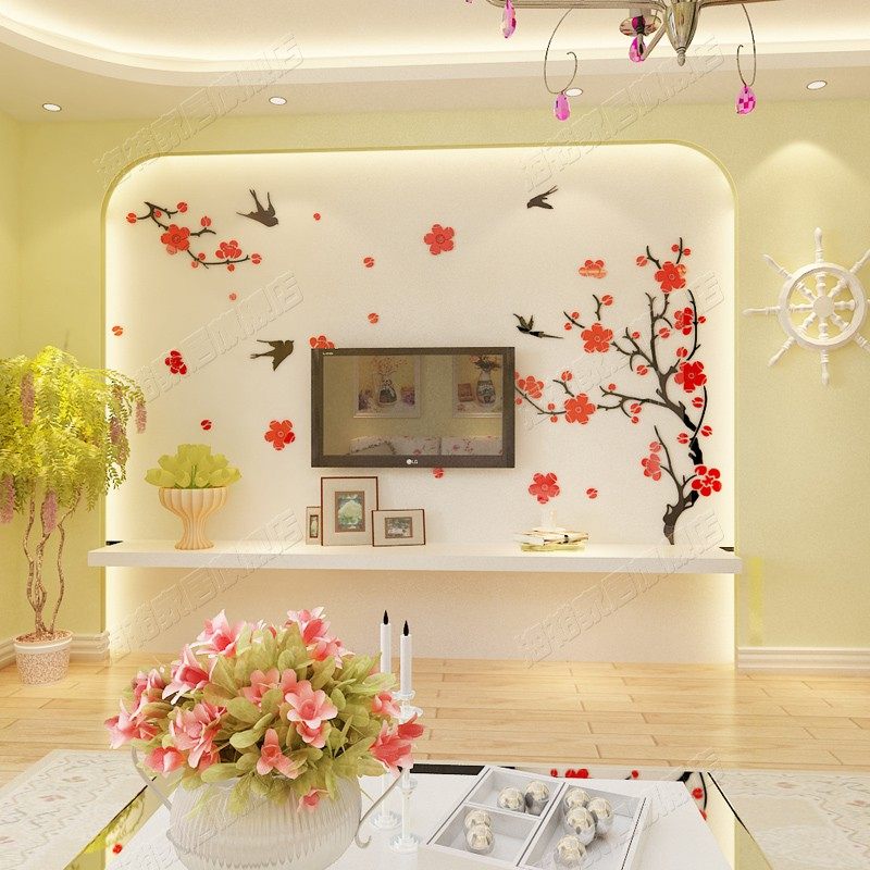 中式梅花亚克力3d立体墙贴纸高档影视电视背景墙壁家居装饰品贴画热门设计联盟服务商