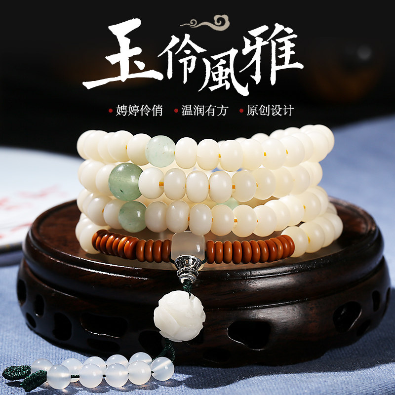 饰念原创设计白玉菩提根手串108颗原籽男女情侣手链项链佛珠手串热门设计联盟服务商