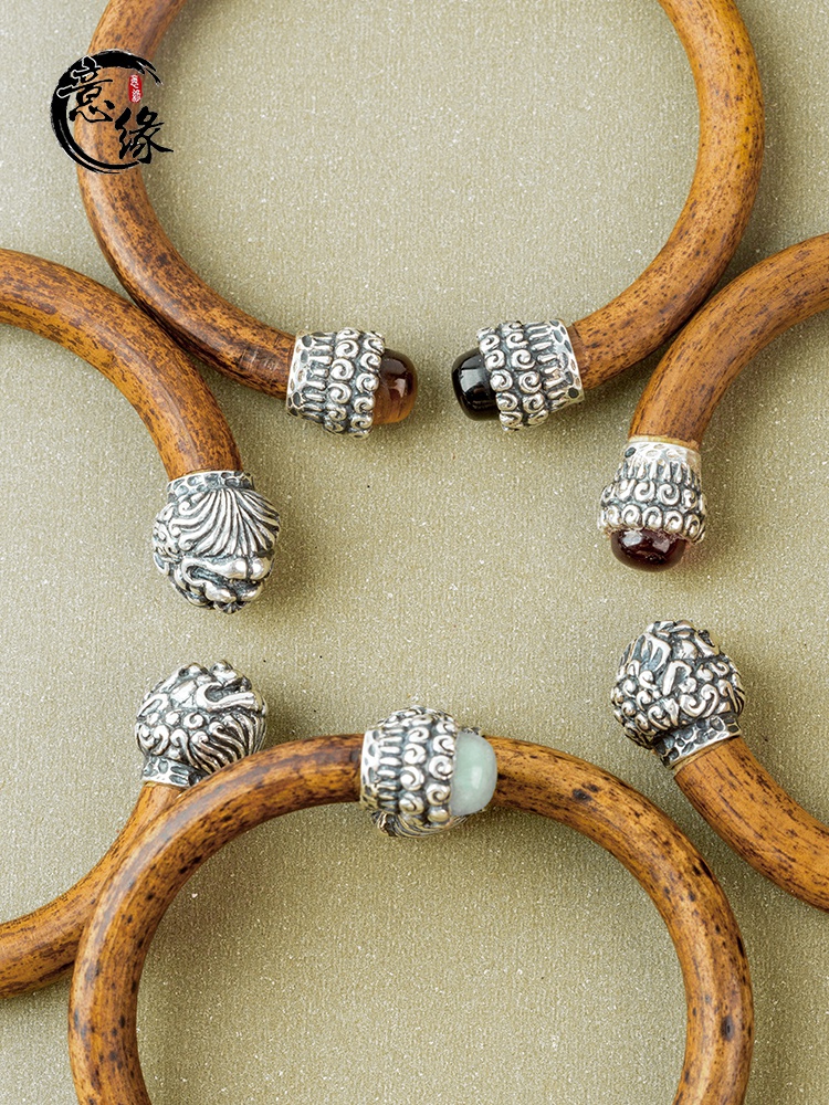 新藏意缘阁高端定制款鸡血藤手镯舞狮抢绣球原创设计999足银饰情热门设计联盟服务商