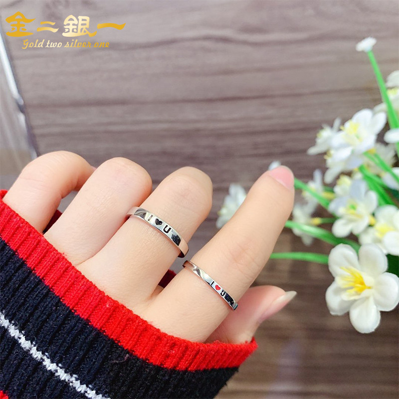 金二银一 ILOVEU情侣对戒925银戒指小众设计简约男女款开口可调节热门设计联盟服务商
